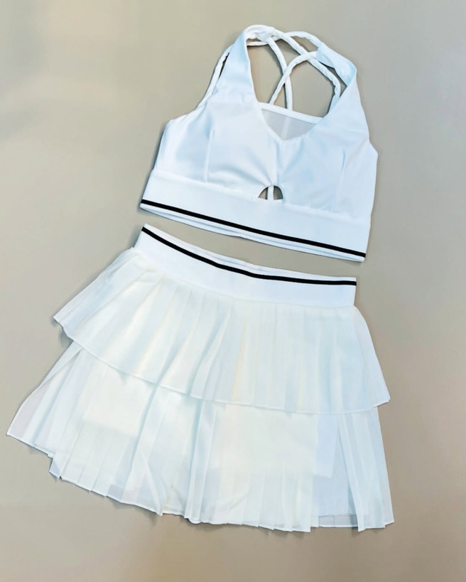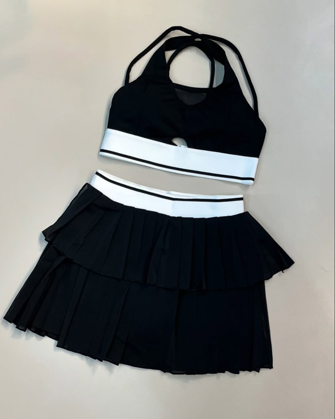 ست کاربردی و خفن که هم برای باشگاه هم برای تنیس عالیه. کاپ نیمتنه متحرک و کمر دامن کش دار.