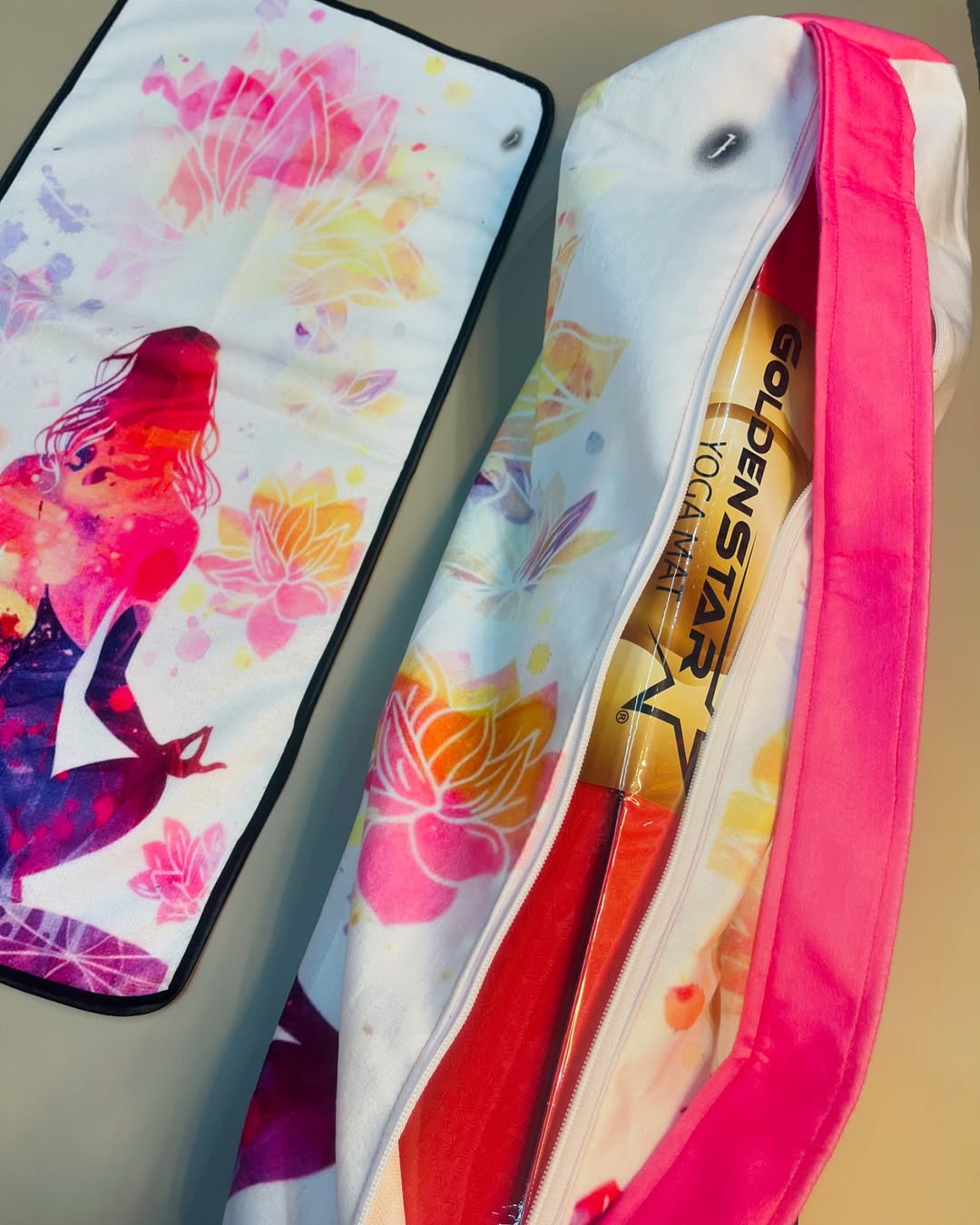 ست کاور مت یوگا + حوله دستی با ابعاد ۷۰ سانتیمتر برای کاور مت و ۶۰×۳۰ سانتیمتر برای حوله، چاپ با مواد خارجی به شرط رنگ ثابت.