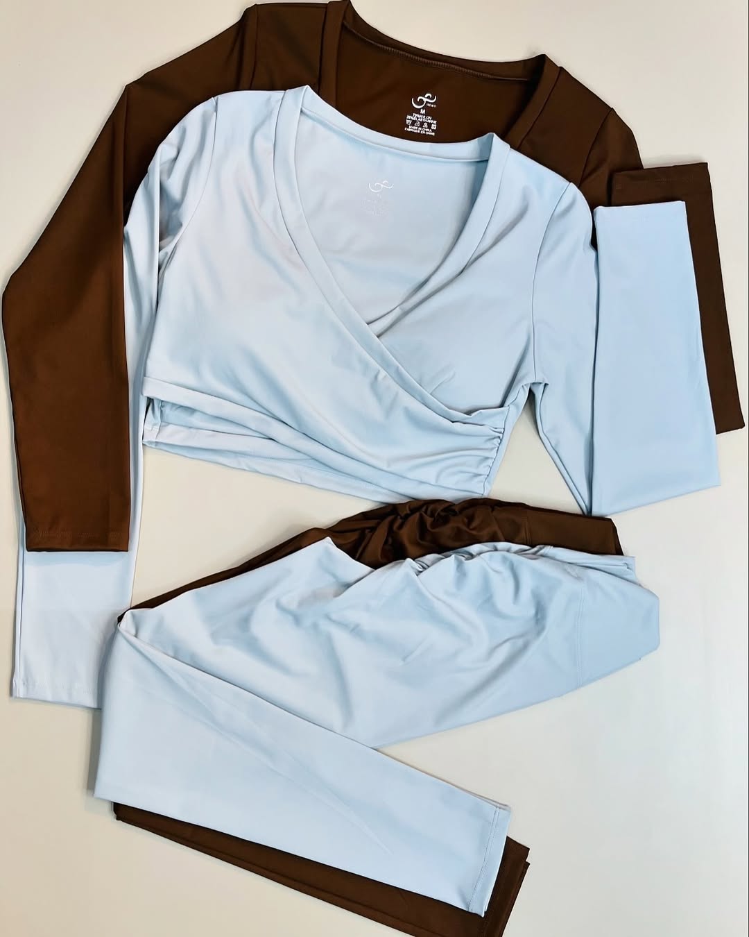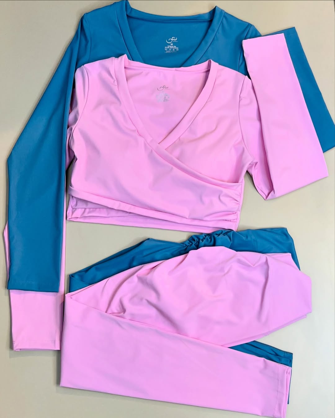 ورق بزن رنگ بندی کار ببین ست کراپ آستین بلند و لگ جنس کار فلامنت نیمتنه پد دار لگ پشت چین.