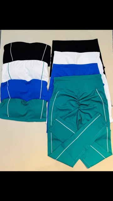 ست شیک و خوش فرم برای باشگاه، لگ پشت چین دار و کمر گنی فرم دهی عالی با جیب برای موبایل و دکلت ظاهر زیبا.